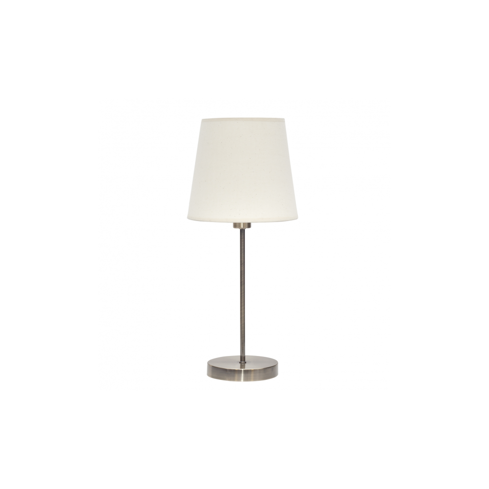 Sobremesa de la serie MALDIVAS en color CUERO/SANCHO. Realizado en textil y metal. Posee un porta lámparas E14. Bombilla no incluida. Tiene unas dimensiones de 46x20x20 centímetros. En esta serie encontramos pie de salón, sobremesa y colgantes de 40 cm y 35 cm de diámetro, todos con combinaciones de colores con metales de color cromo, níquel, marrón, cuero y blanco, para elegir la que mejor se adapte a su decoración.