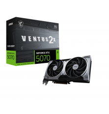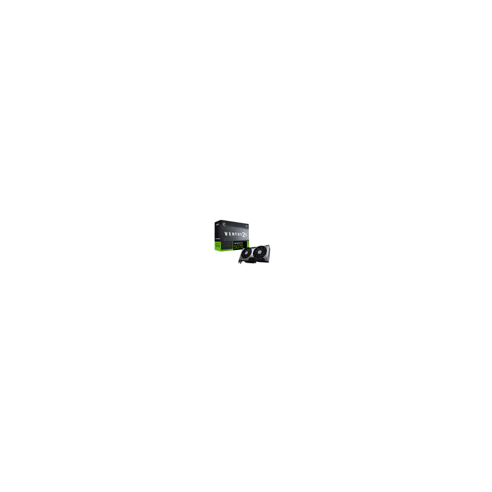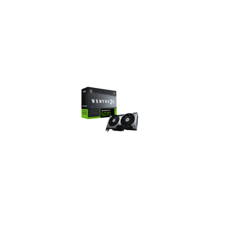 MSI GeForce RTX 5070 12G VENTUS 2X OC. Familia de procesadores de gráficos: NVIDIA, Procesador gráfico: GeForce RTX 5070. Capacidad memoria de adaptador gráfico: 12 GB, Tipo de memoria de adaptador gráfico: GDDR7, Ancho de datos: 192 bit. Máxima resolución: 7680 x 4320 Pixeles. Versión DirectX: 12 Ultimate, Versión OpenGL: 4.6. Tipo de interfaz: PCI Express 5.0. Tipo de enfriamiento: Activo, Número de ventiladores: 2 Ventilador(es)